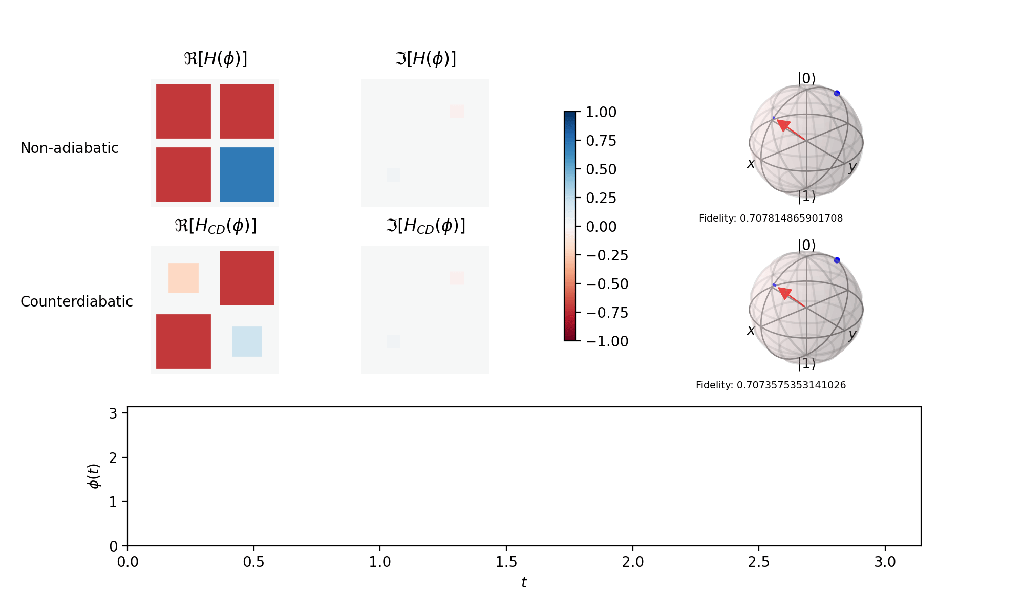 Okay, so what do we do with this information? Our goal, as with any counterdiabatic protocol, is to drive a time-dependent Hamiltonian as quickly as possible with as few losses/transitions out of the eigenstate as possible. We have several problems: