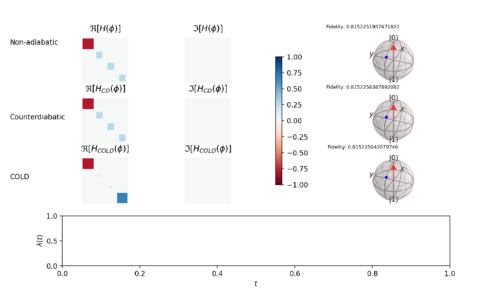The focus of our new method COLD is to find a way to speed up adiabatic processes while suppressing non-adiabatic losses. It is by no means the only one out there trying to accomplish this – there is an entire zoo of research papers focused on the topic, with many of them under the banner of shortcuts to adiabaticity (STA) (I recommend this review for anyone interested in finding out more). One key method in STA is counterdiabatic driving.