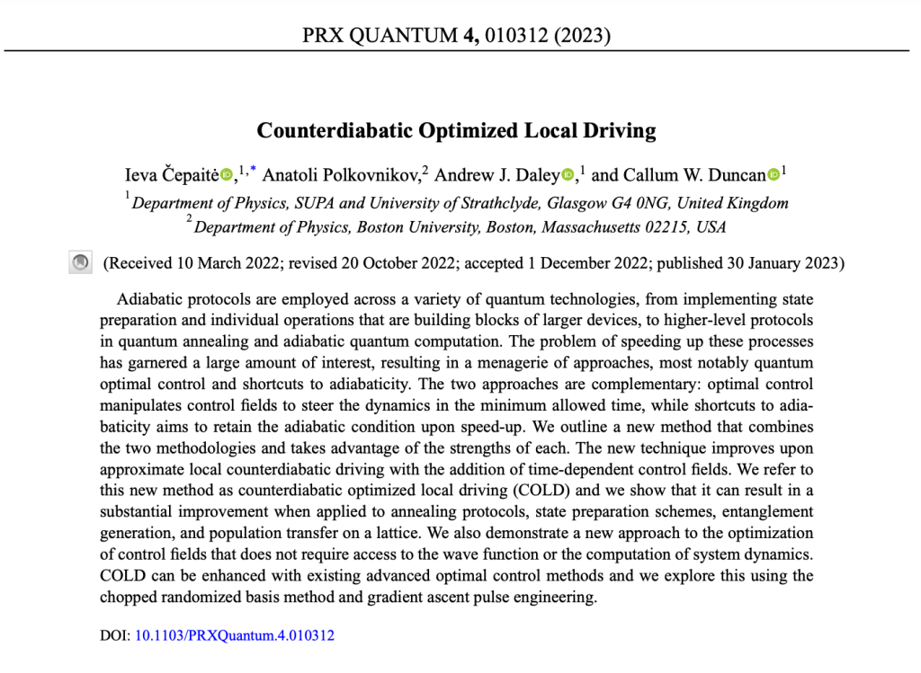 Recently, my paper Counterdiabatic Optimised Local Driving (which I will refer to as COLD 🧊) finally got published in PRX Quantum!